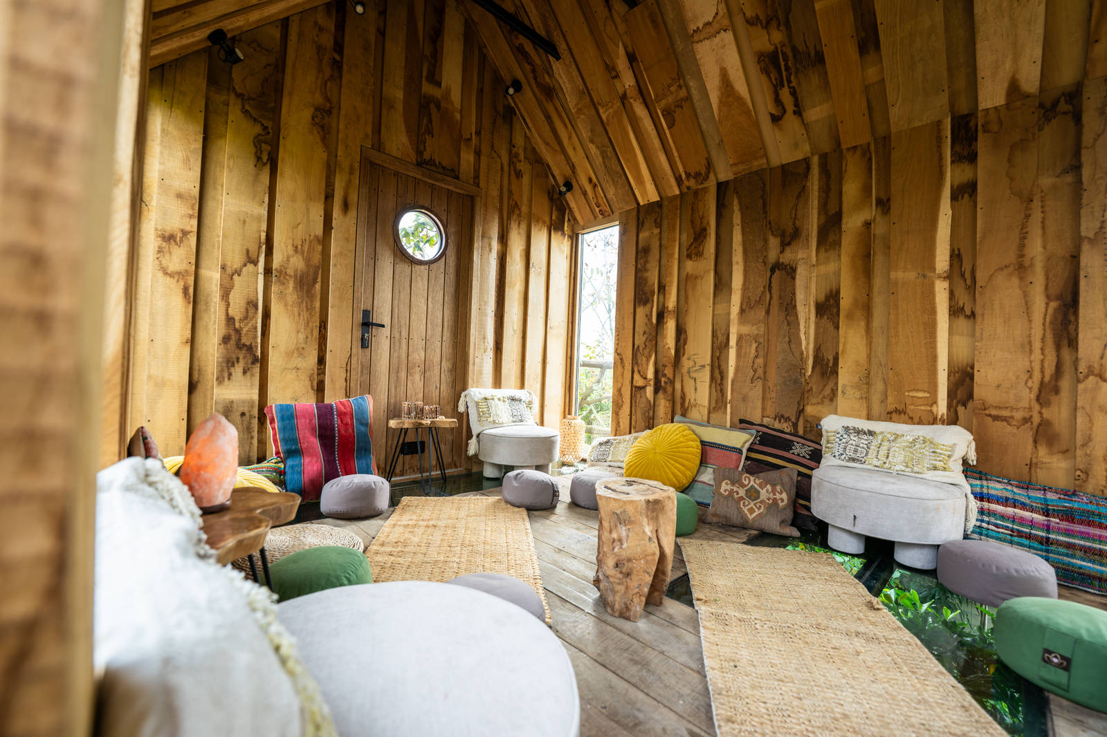 Vanuit de Boomhut kijk je uit over de bijzondere Daktuin en de talloze bomen van de boomkwekerij. Binnen heerst een warme en intieme sfeer. Rondom de bijzondere boomtafel is plaats voor 8 gasten. De ruimte beschikt bovendien over een ambachtelijke kachel, waardoor je er ook in de winter heerlijk kunt zitten.