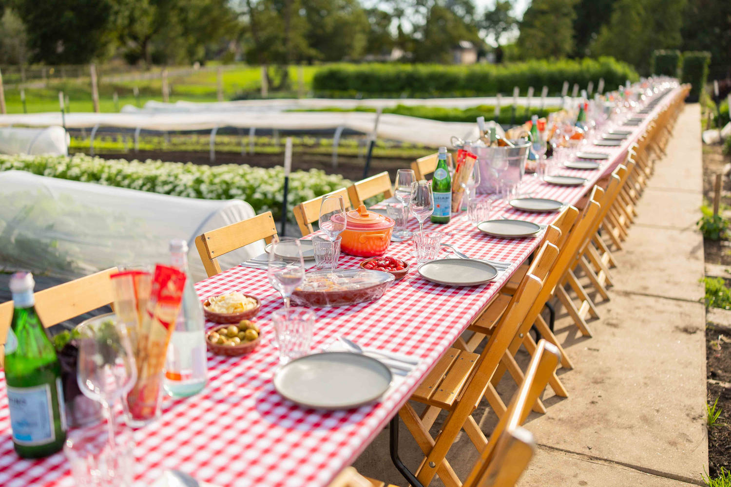 Schuif aan bij een moestuindiner met een tafel midden in de tuin