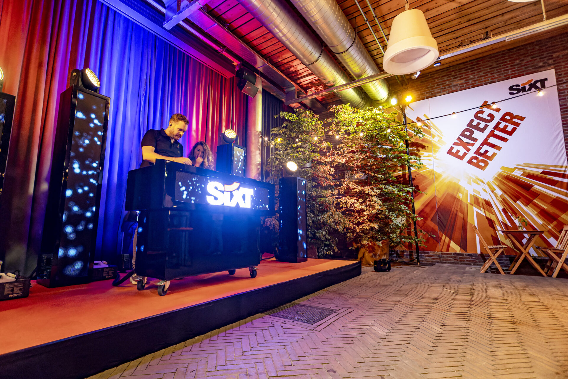 Geheel in stijl werd onze groene loper ingeruild voor een oranje Sixt variant. De medewerkers werden welkom geheten door twee beeldschone hostessen die we speciaal voor deze gelegenheid een Sixt-look gaven. De avond trapten we af met heerlijk eten bij verschillende foodcourts op de daktuin. Een combinatie van perfect zomers weer en sfeervolle muzikale begeleiding van een akoestisch trio zorgde voor een zomerse sfeer. Na afloop van het diner werden de gasten uitgenodigd naar het Binnenplein en de Industriële Hal waar de afterparty van start ging met een mini-festival van o.a. een mainstage, SIXT-photobooth, silent disco, XXL tafelvoetbal en een snackfiets.